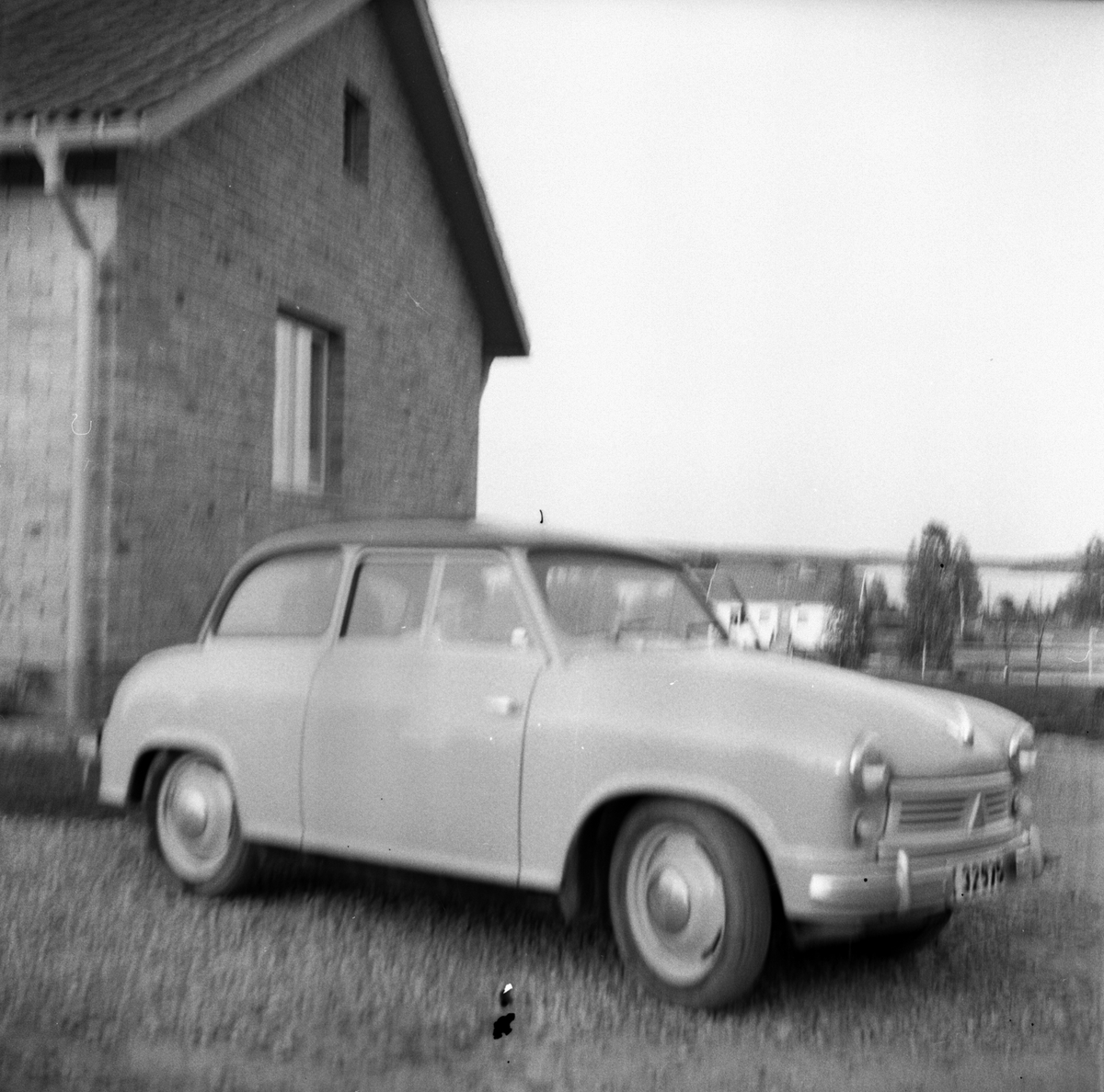 Bil vid bostadshuset. En Lloyd 600 alt Alexander 3 resp.4 växlad mitten-slutet av 1950 talet.