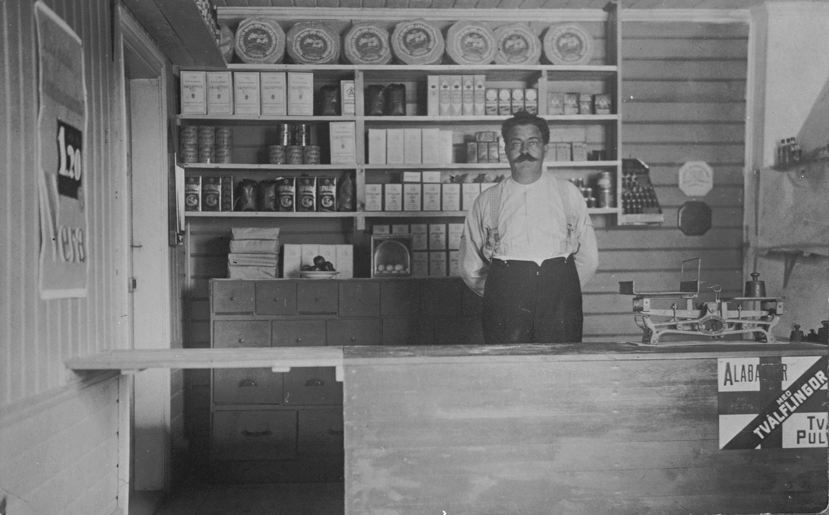Oskar Pettersson i sin diversehandel, inrymd i början av byn, där han även drev gästgiveri .