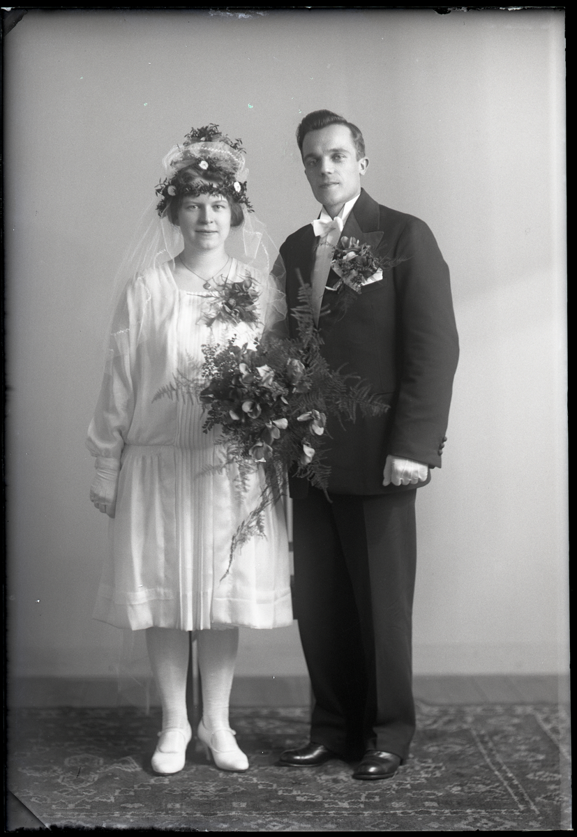 Brudpar. Elis Hjelm, Hermansro, Kolbäck. Ur Gustaf Åhamans samling.