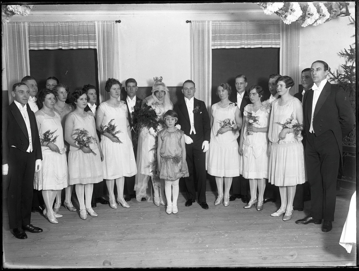 Grupporträtt, brudpar. Korrespondent Johansson, Surahammar.