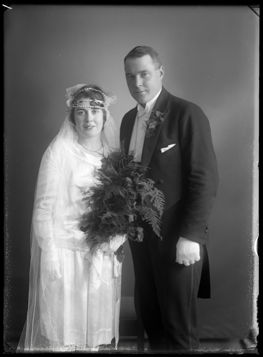 Brudpar. Helmer Vestling, Riddersviks Gård, Hässelby, Villastad.