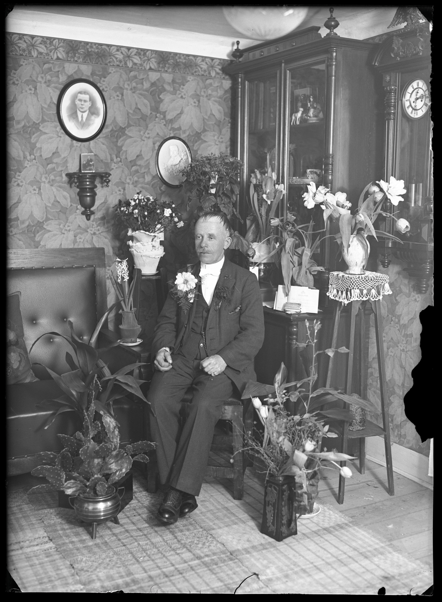 Titel: Porträtt, 50-års foto, Karl Jonsson, Bruket, Hallstahammar. Ur Gustaf Åhmans samling.