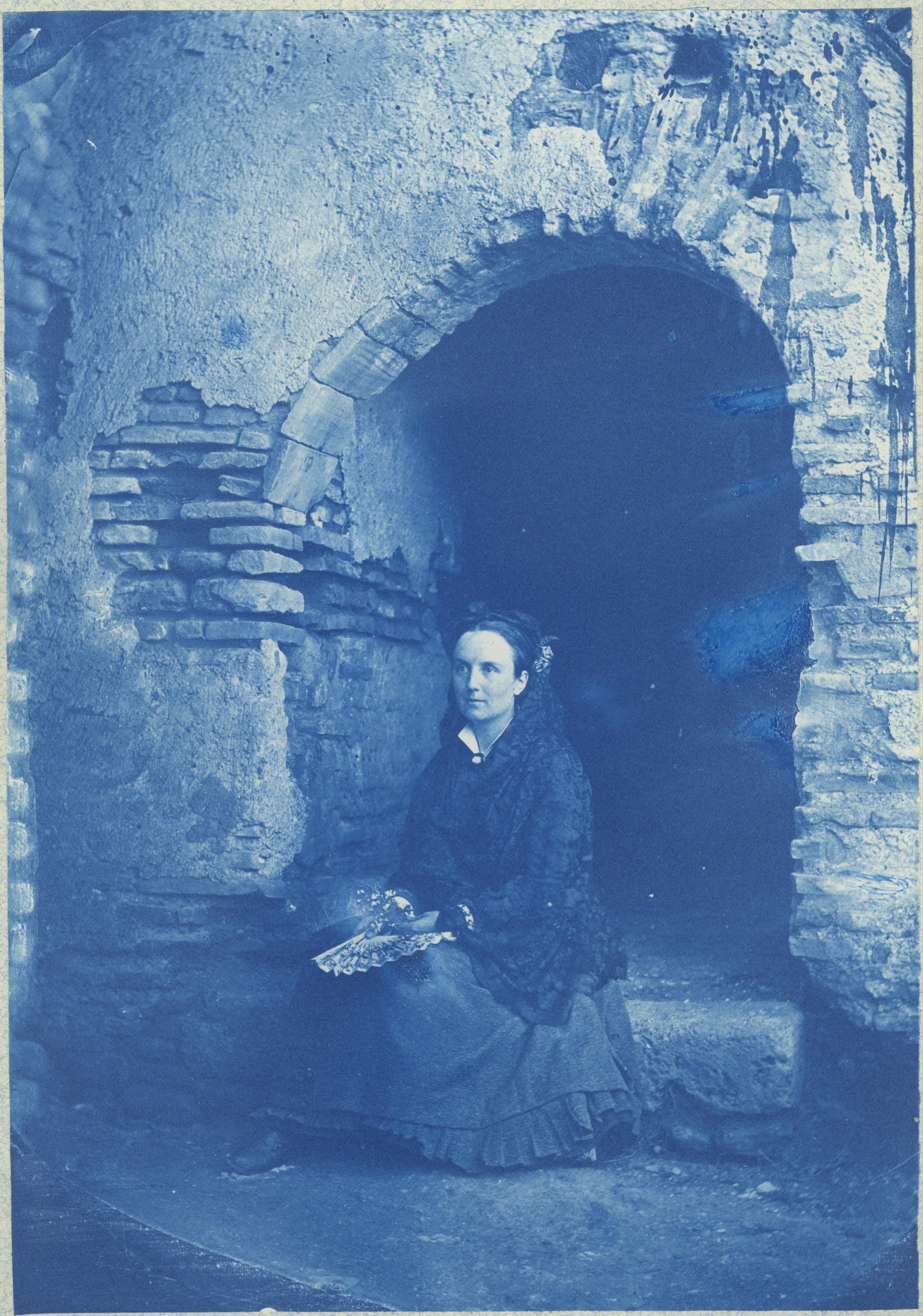 Calla Curman med mantilj och solfjäder, troligen i Andalusien.