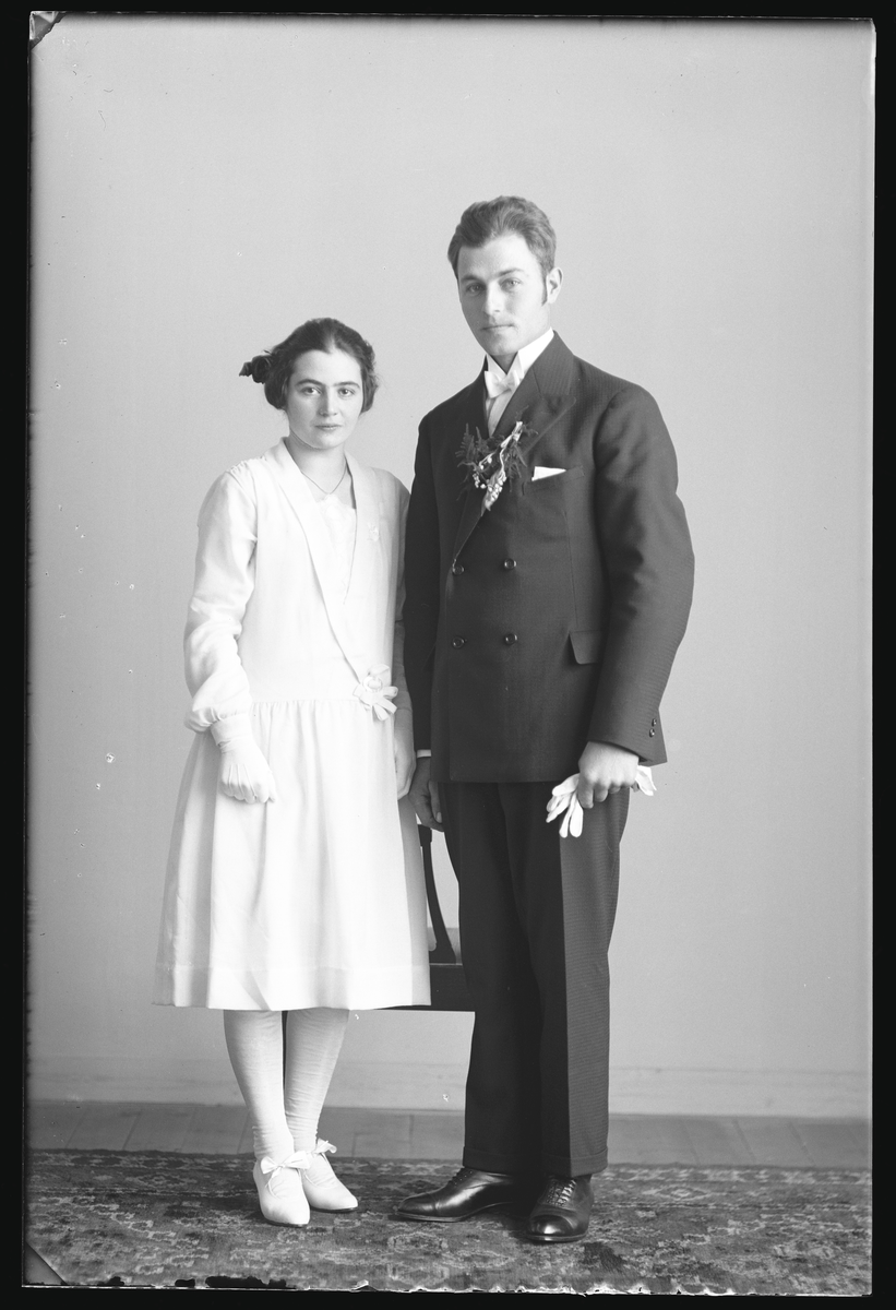 Titel: Brudpar, grupporträtt, Valter Larsson, Engberga, Hallstahammar. Ur Gustaf Åhmans samling.