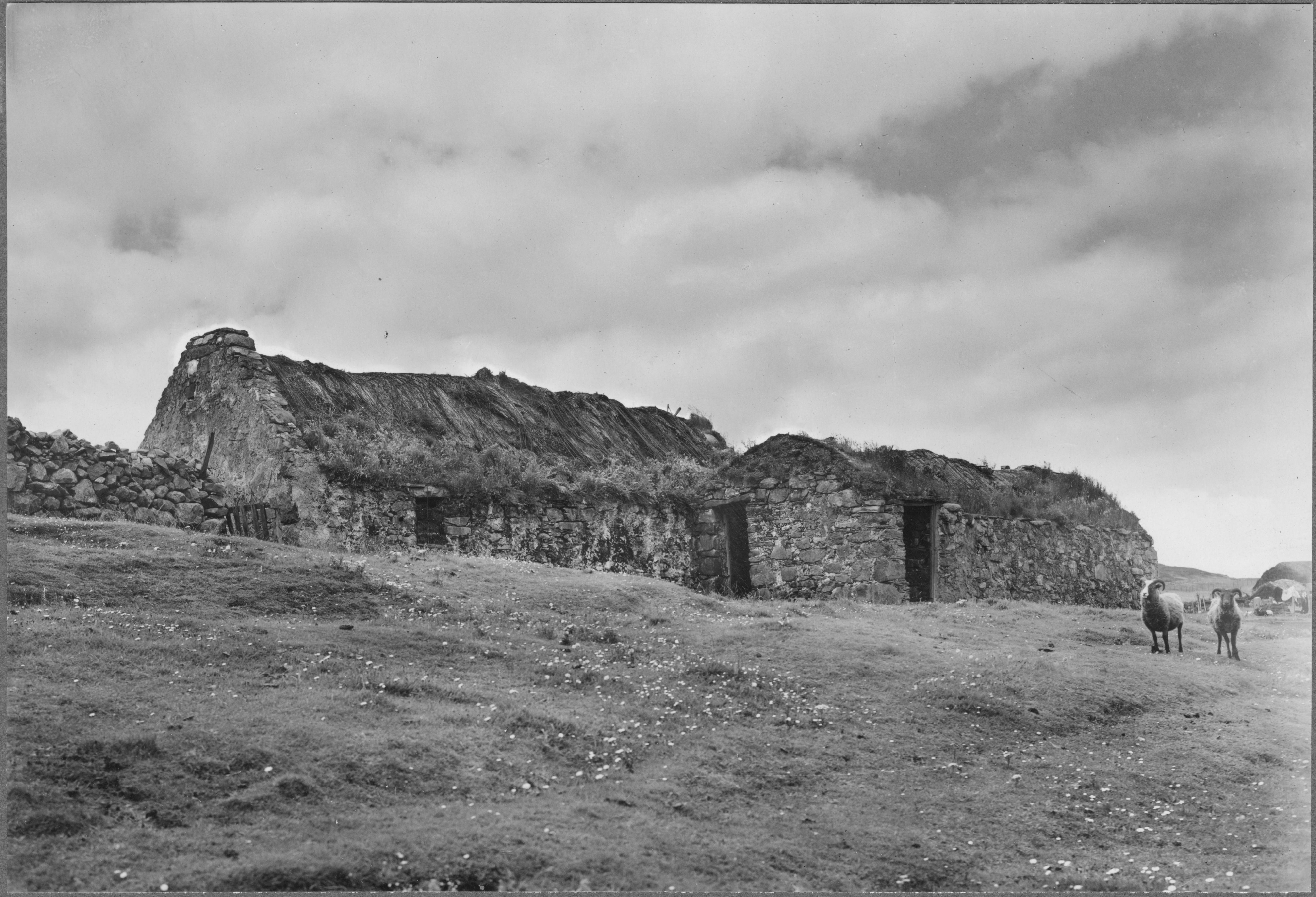 Byggnader och får i Effirth på Shetlandsöarna, huvudön Shetland Mainland.