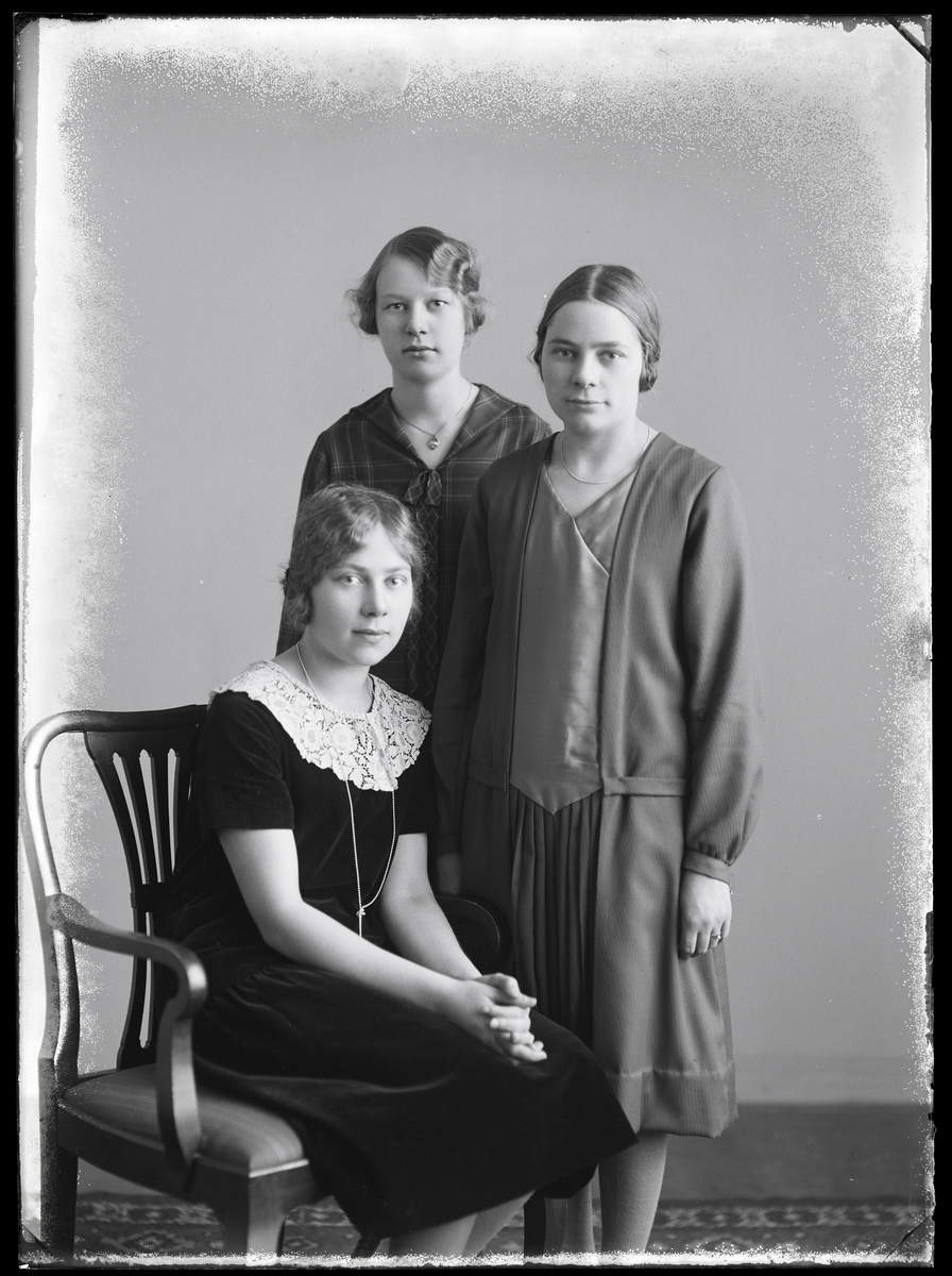 Grupporträtt. Fröknarna Eriksson, Mejeriet, Kolbäck.