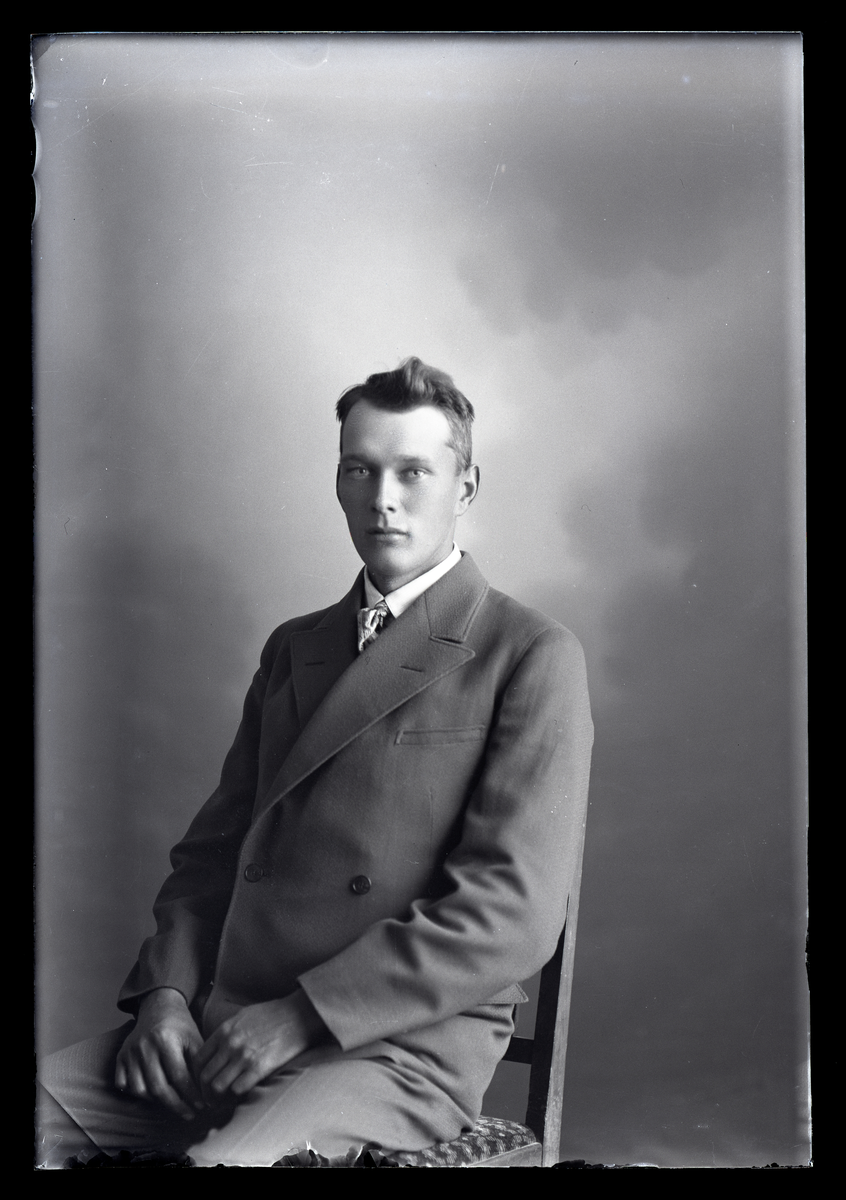 Titel: Mansporträtt, Erik Andersson, Gustafsberg, Årby, Kolbäck. Ur Gustaf Åhmans samling.