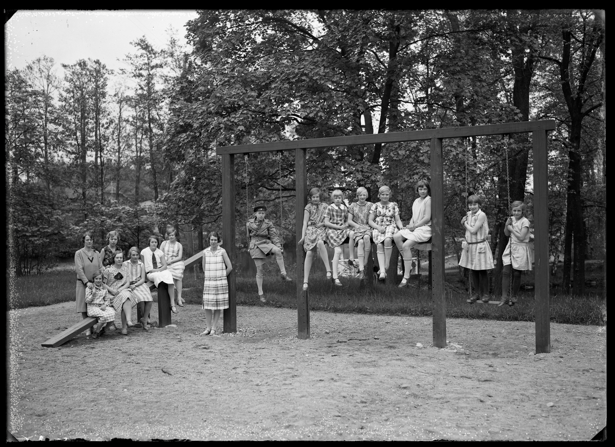 Grupporträtt vid gungor. Silverstolpe, Surahammar.