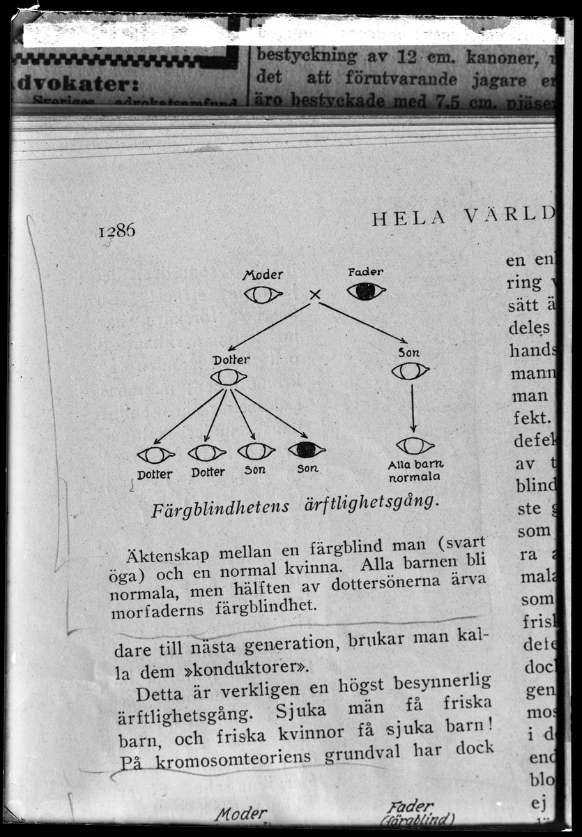 Färgblindhetens ärftlighetsgång. Dir. Celsing, Kolbäck.