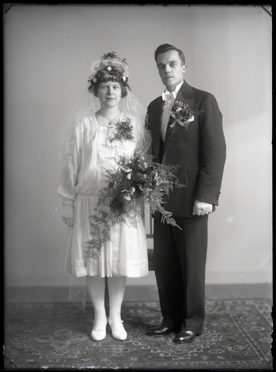 Brudpar. Elis Hjelm, Hermansro, Kolbäck. Ur Gustaf Åhamans samling.