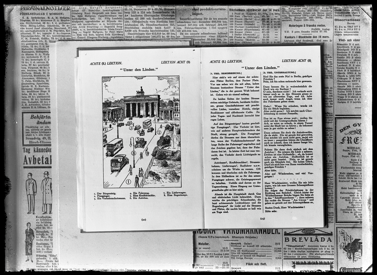 Bokuppslag, lärobok i tyska (lektion åtta). A. Alforn, Hallstahammar.