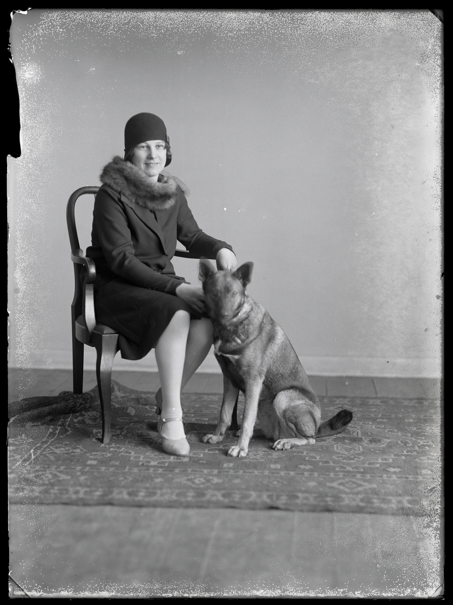 Porträtt, kvinna med hund. Agda Pettersson, Caféet, Kolbäck.
