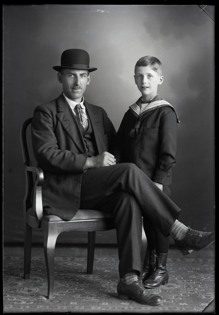 Grupporträtt, man och pojke. Bengt Karlsson, Bovallen, Skultuna.
