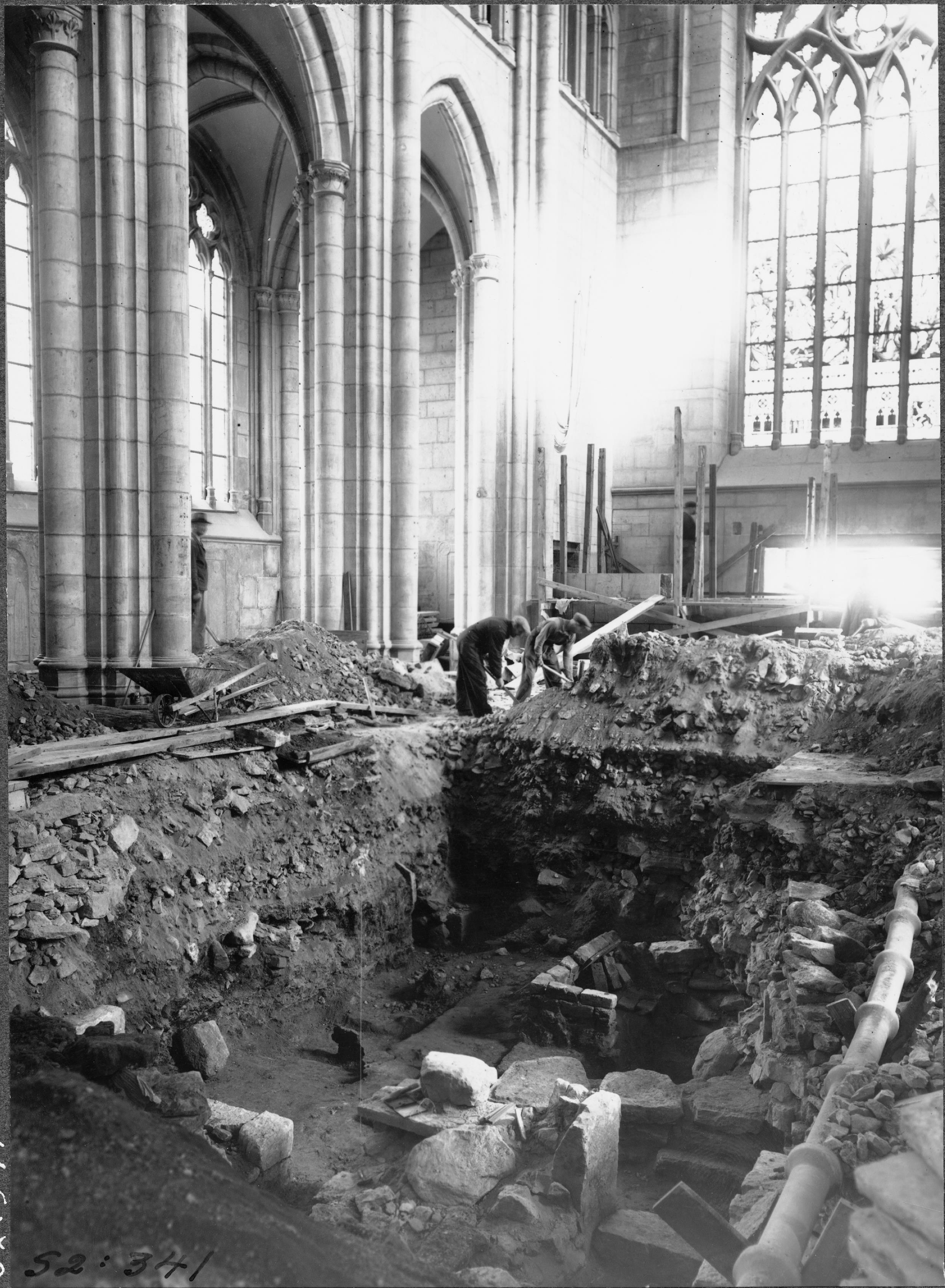 Beskrivning: Grävning inom kyrkan, schakt X, från sydväst.