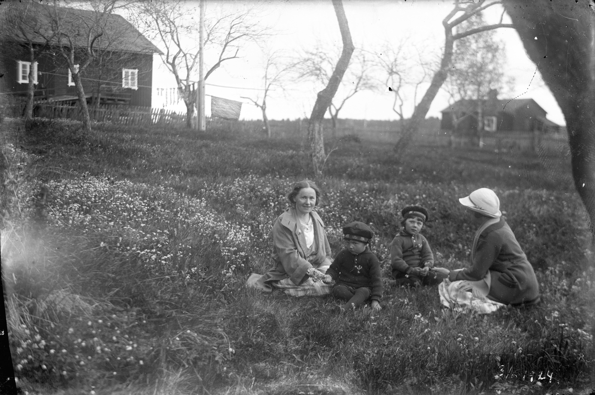 Kvinnor och barn i gräset.