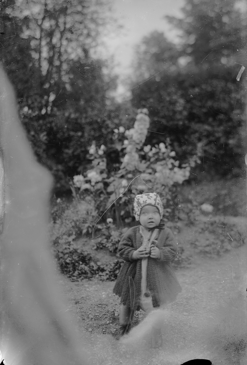 Titel: Barn i trädgård.