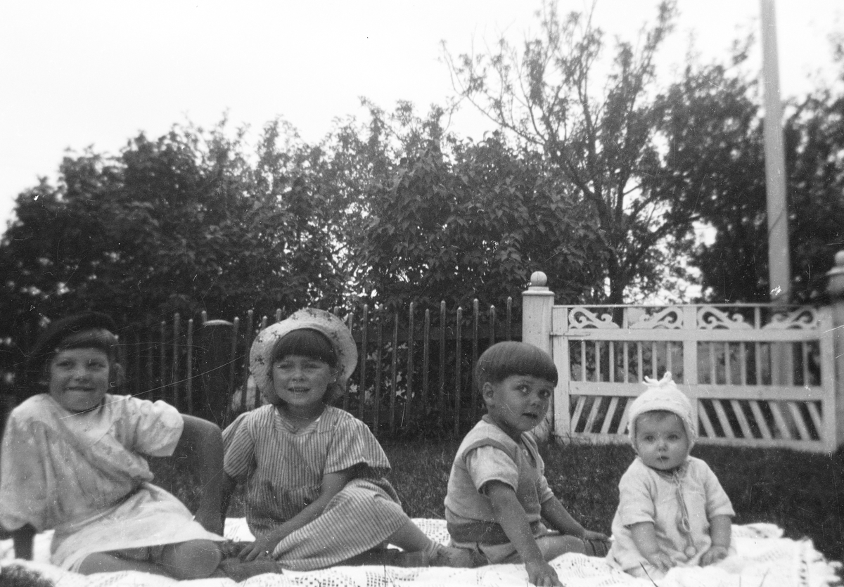 Barn på filt i trädgården
