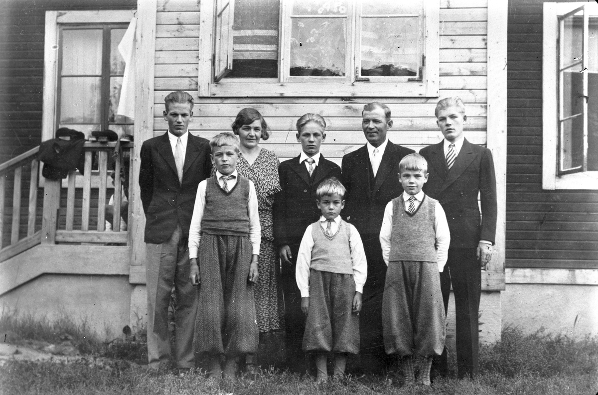Emma och Erik Källström med sina barn. Harry, Olle, Bengt, Tore, Stig och Torsten