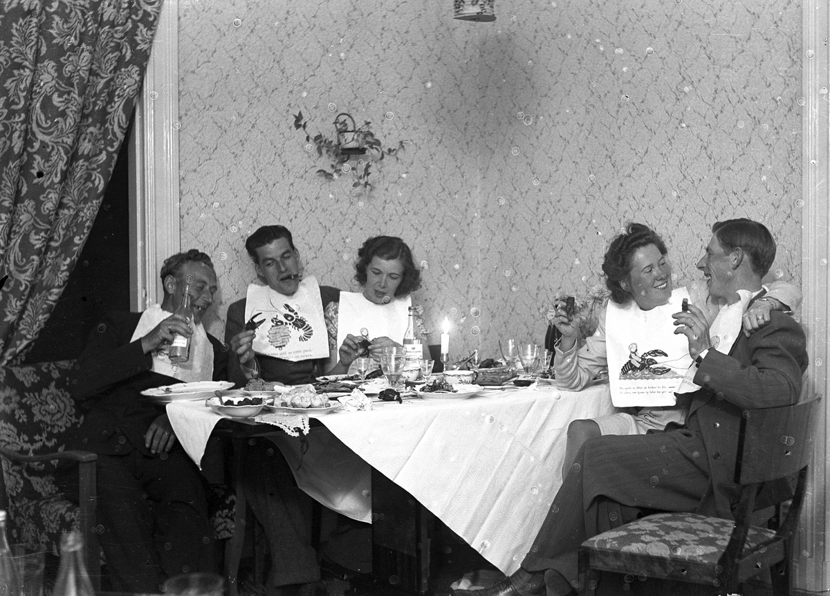 Okända män och kvinnor har kräftskiva