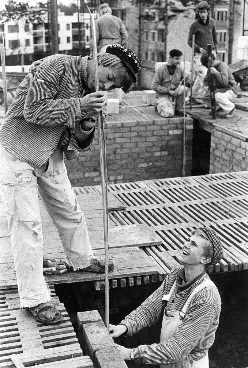 Sätra, Murarlärlingar. Från utställningen "Gävlar i stan" på Gävle Museum 1967.