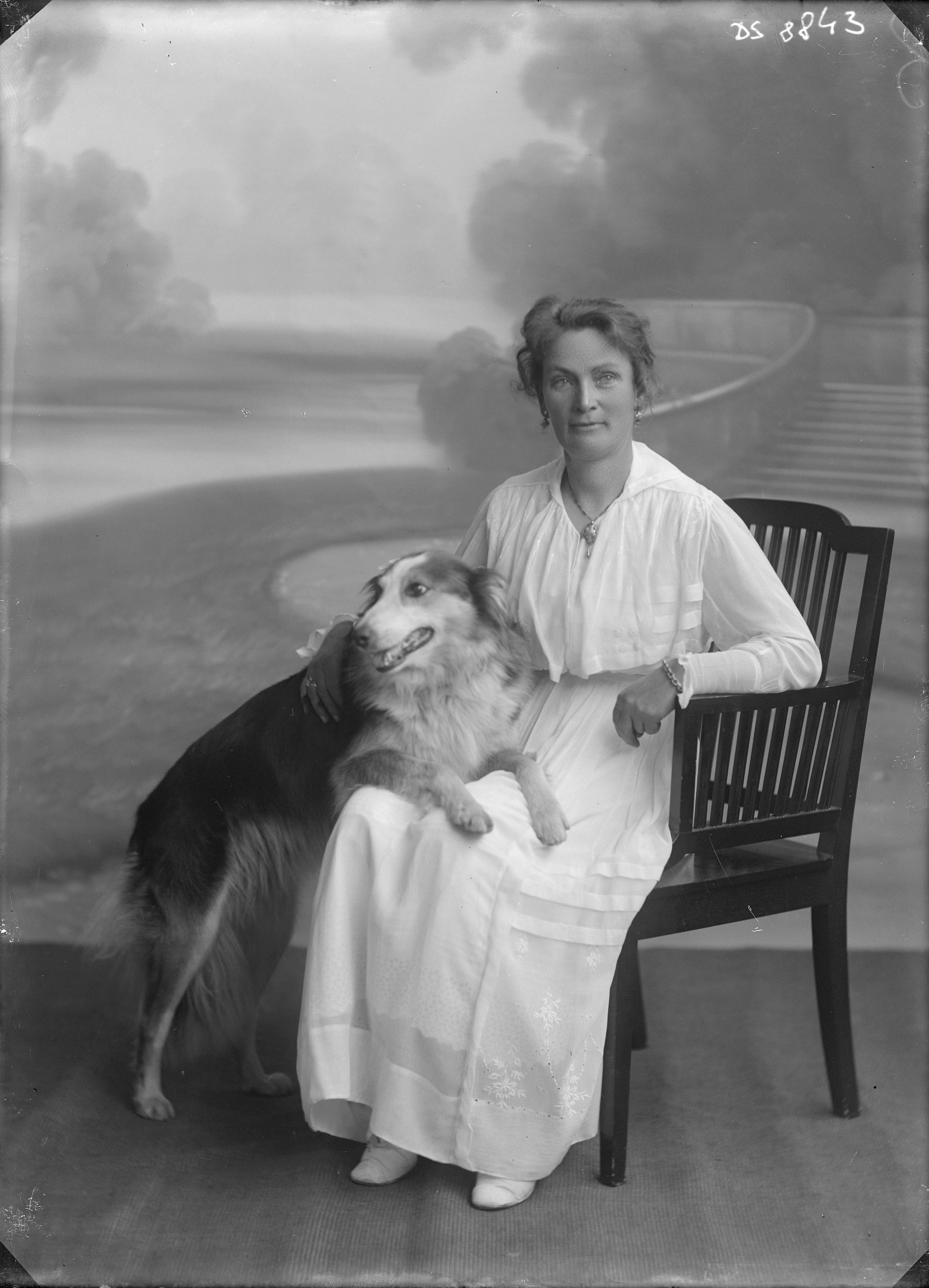 Porträtt av Helena eller Hilda Adamsson i Sege, med hund.