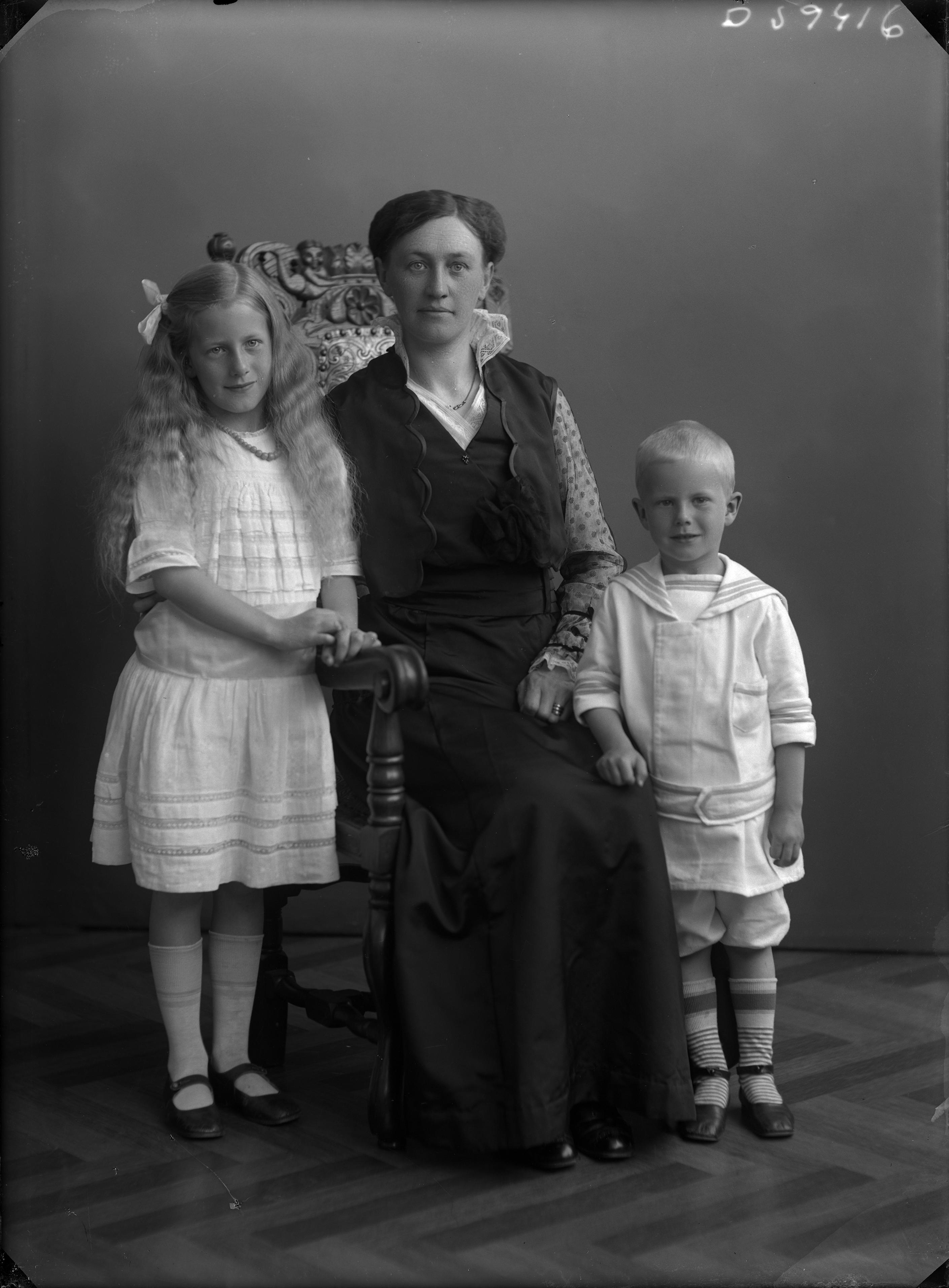 Beskrivning: Fru Ing. Algot Engström + 2 barn.