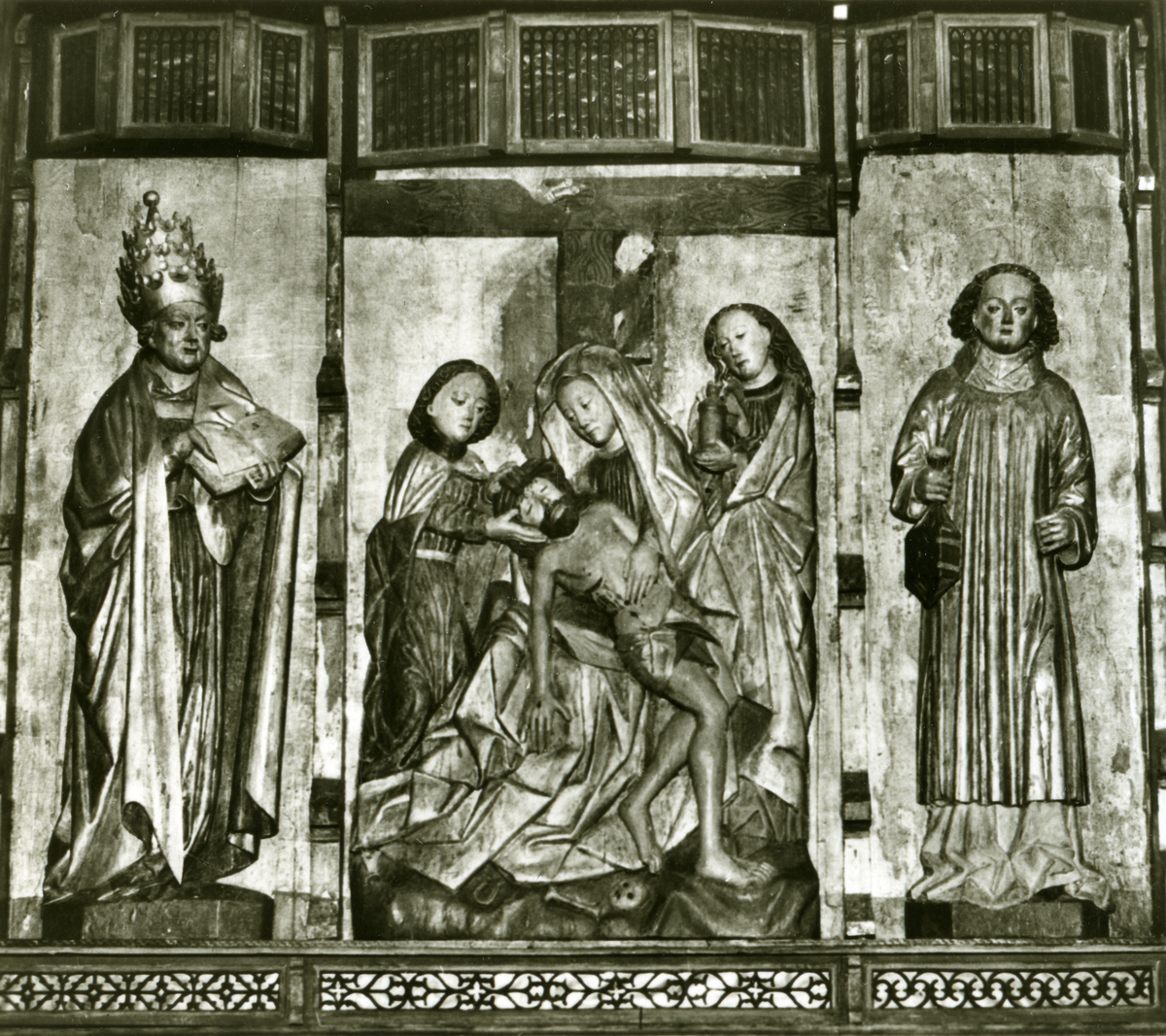 Altarskåp från Bollnäs kyrka med bilden föreställande Kristi gravläggning.1500-talets början.