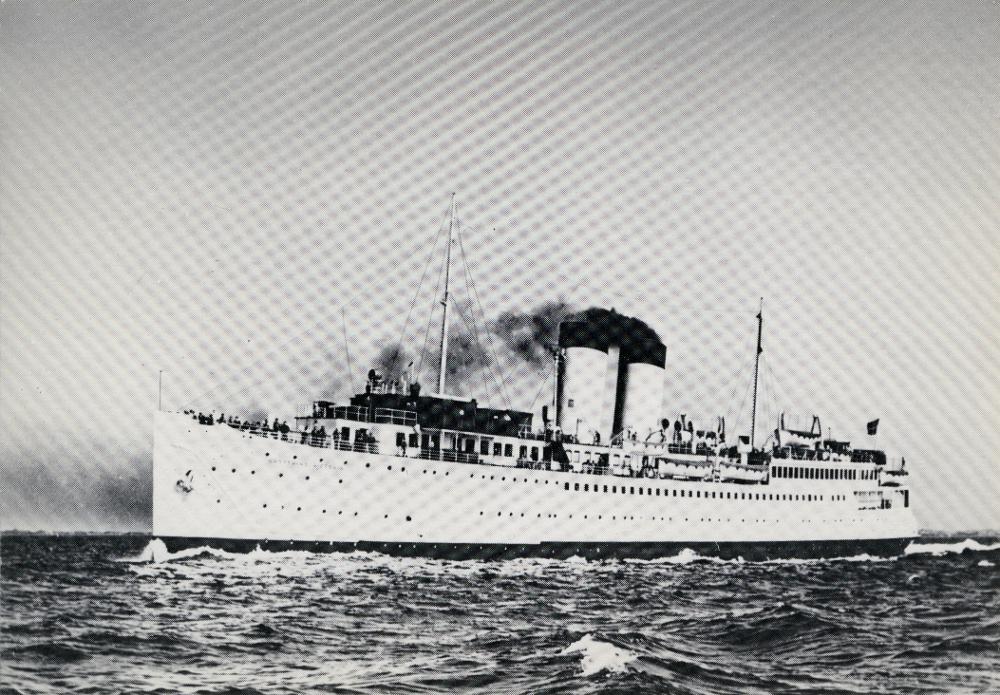 Vykort av ett svartvitt fotografi som visar tågfärjan S/S Drottning Victoria någonstans på Östersjön. I bakgrunden skymtar en kustlinje. Det är dock oklart vilken. På vykortets baksida står det tryckt ""Drottning Victoria" byggd 1909 på varv Swan, Hemter & Wigham, Richardson Ltd, Newcastle-on-Tyne. Längd ö.a. 113,33 m. Bredd 15,56 m. Djupgående 5,0 m. Dödvikt 600tdw. Antal passagerare 816 st. Spårlängd ca 167 m. Fart ca 17 knop." samt "POSTENS TRYCKERI 1982". Skrivet med blyerts på baksidan står även "5044" och "H.".