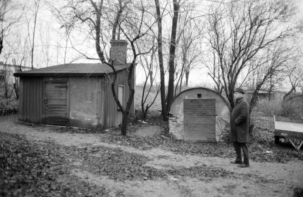 Ett ögonblick fångat i en miljö som möjligtvis för tanken till allmän nyfikenhet eller måhända en markexploatör med planer. Sanningen är personal från Östergötlands museum som intresserar sig för historien i det mesta. Dokumentation av den kvarvarande bebyggelsen till fastigheten Gamla Tanneforsvägen 2 inför planerad sanering. Foto 1970.