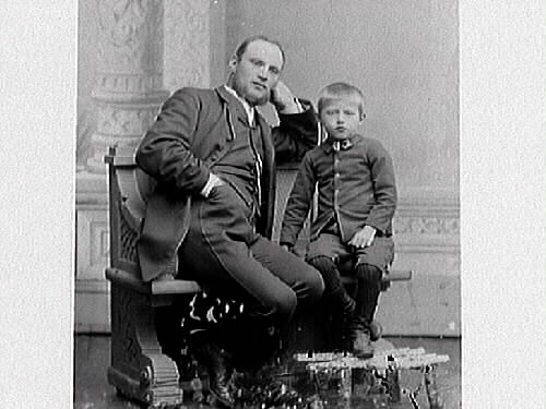 Ateljéfoto. Mathilda Ranchs äldre bror Carl Ranch med en av sina söner, troligen Axel som föddes 1882. Carl och hustrun Agnes fick sex söner och två döttrar mellan 1882 och 1905.