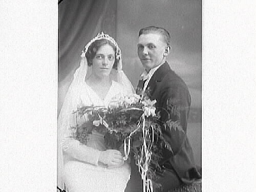 Brudpar. Bröllopsbild av Astrid Karlsson med make, Ulvatorp i Veddige.
