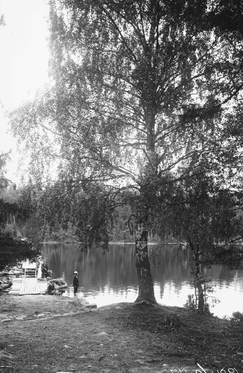 Vid sjön Hindsen i Värnamo står några människor och fiskar.