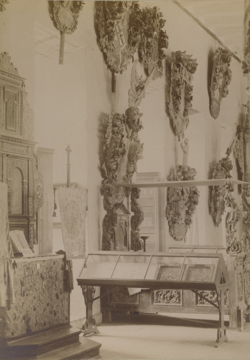 Förbrända salen på Kalmar slott fungerade som länsmuseets utställningslokal. Här syns några av de epitafier som senare återförts till sin ursprungliga plats i Kalmar domkyrka.