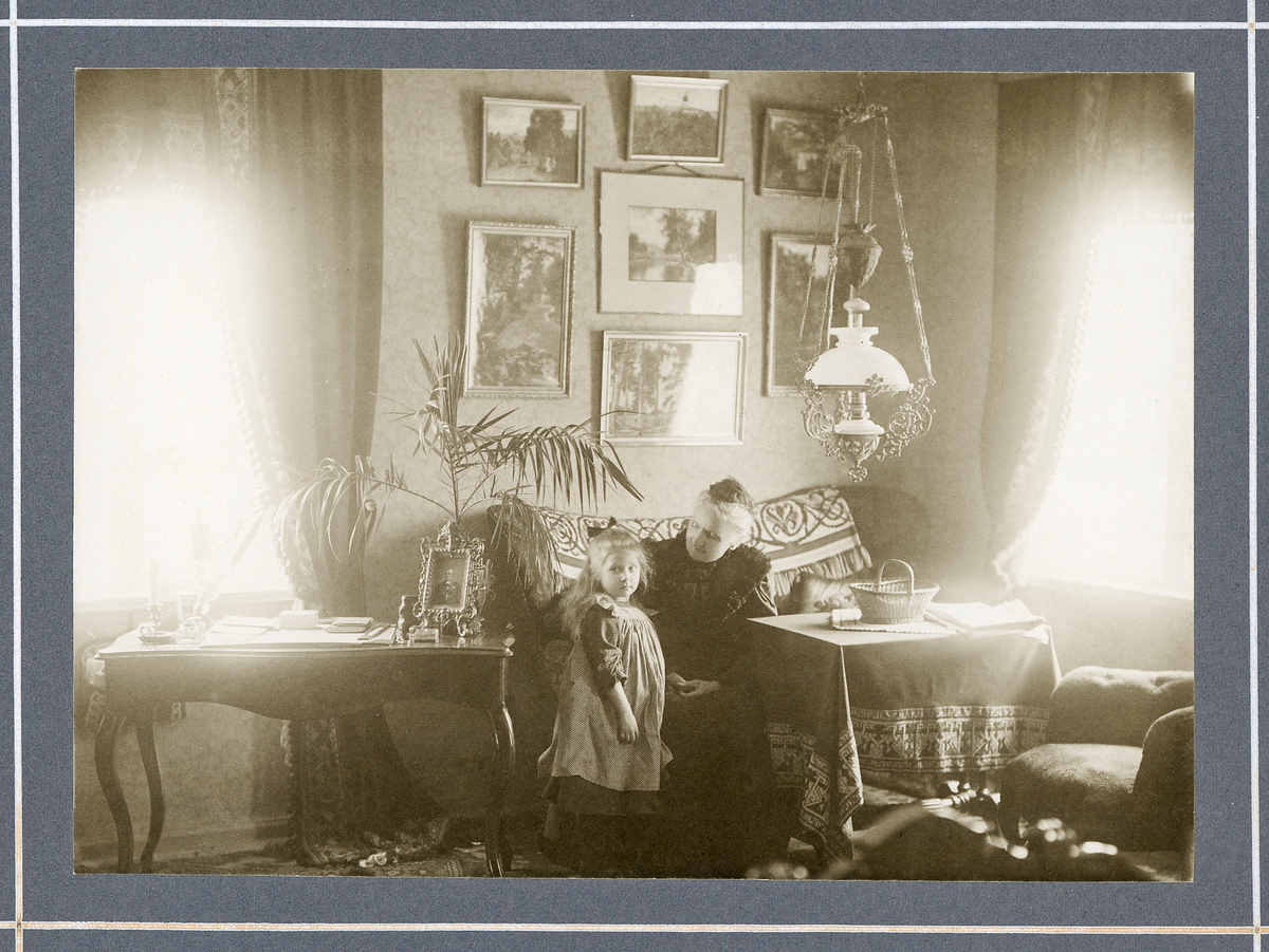 En äldre kvinna (biskopinnan Elise Andersson) sitter med ett av sina barnbarn i sin sängkammare, Nygatan 6, Växjö.