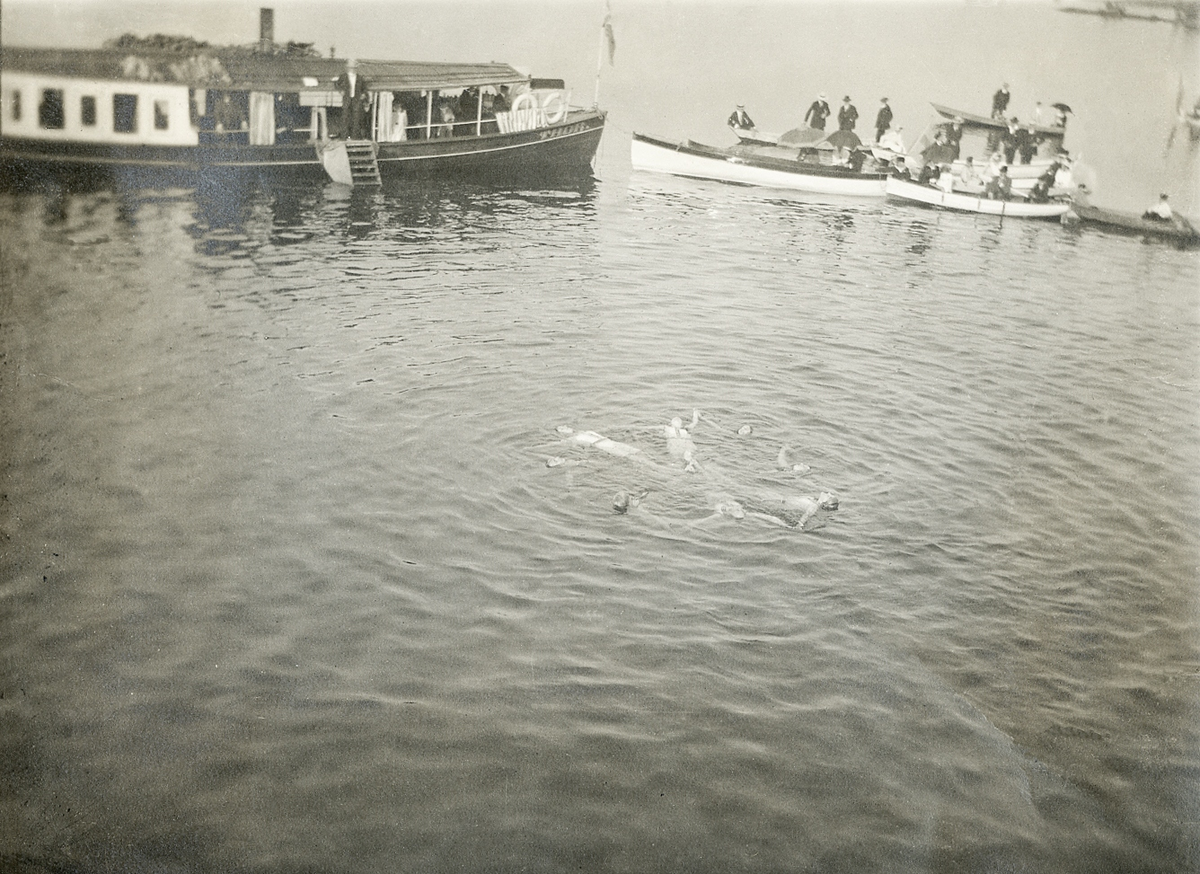 I bakgrunden syns ångaren Thor t.v. och flera andra båtar med nyfikna åskådare.
