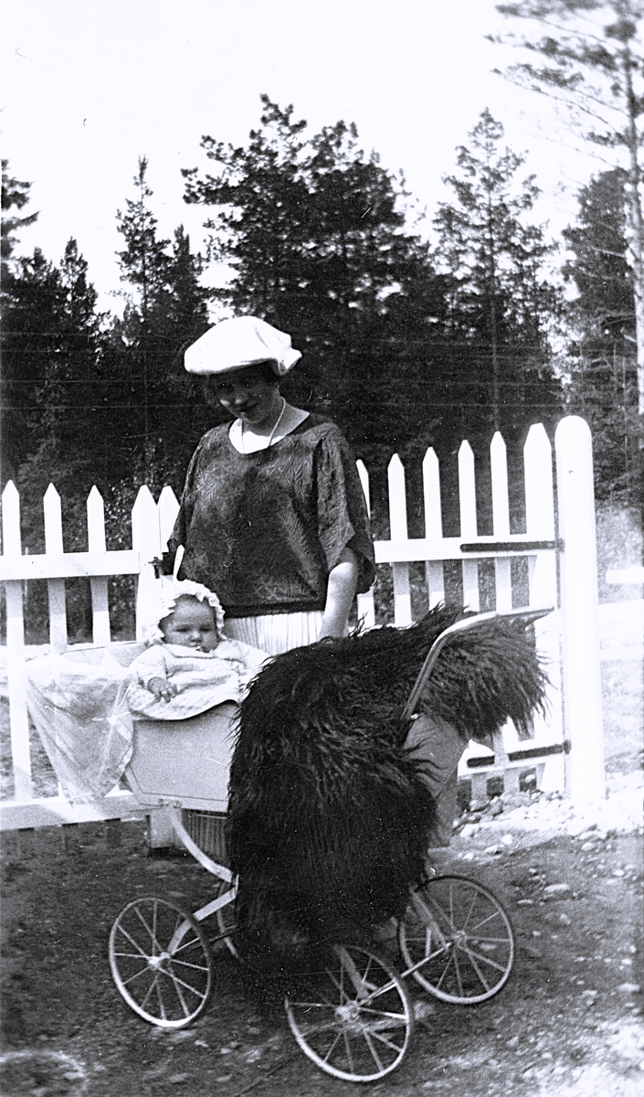 Foto av Gerda med sin son (enligt bildtext i album). Text baksida kort: "Mamma och Rune 12/7 1925".