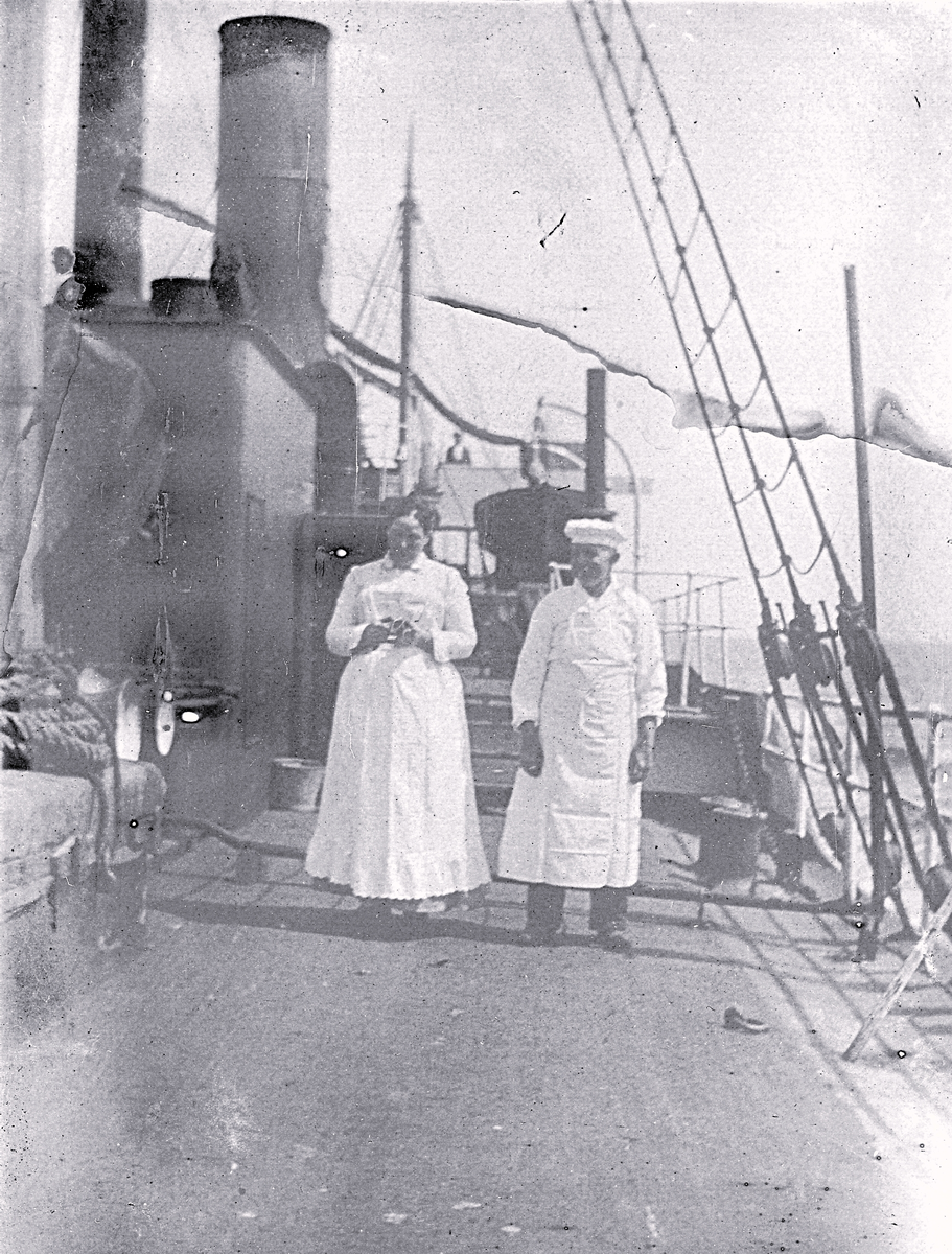 Foto av "Fia" och "stuarten" på fartyget "Thetis" (enligt bildtext i album).