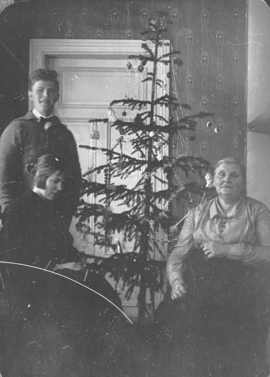 Ett sällskap, bredvid en julgran.