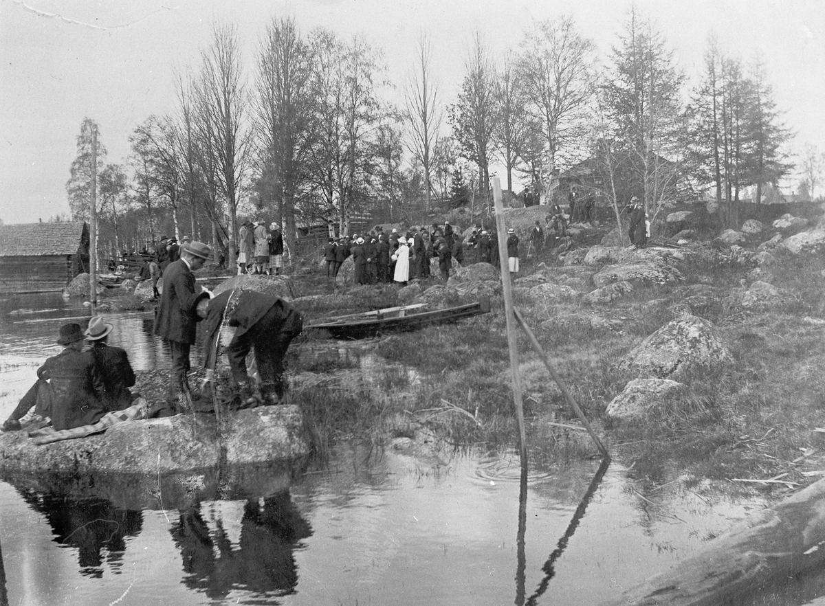 De frimodiga samvetsömma fick en märklig väckelse till stånd bland Fågelsjöborna med några uppmärksammade massdop som följd. Här samlas dopförättare, aspiranter, släkt och vänner vid stranden av Fågelsjön.