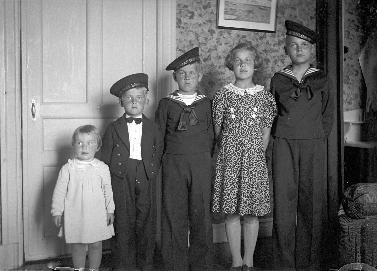 Bernhard Skoglunds barn. Kristina, Sven, Olle, Gunda och Gunnar