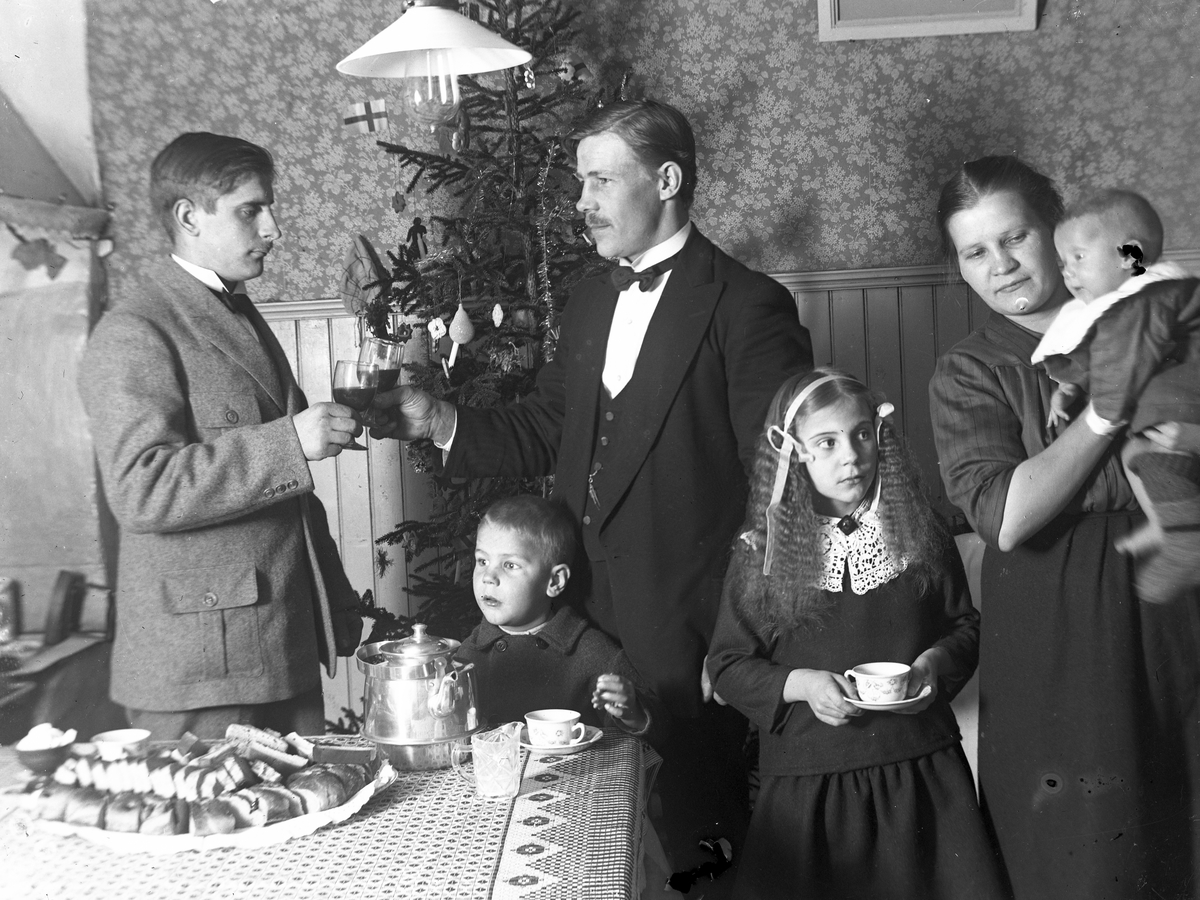 Jul i stugan. Karl Olsson, Bror Sundqvist, Emils syster Anna med barnen Linnea, Rune och Bengt (på armen).