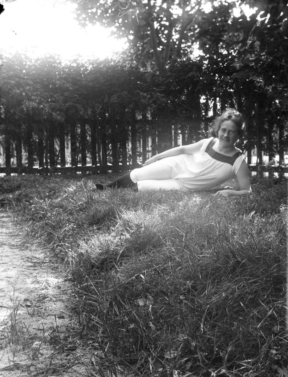 Ung kvinna i gräset.