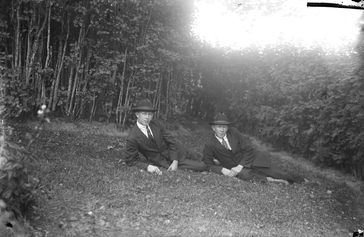Två unga män i gräset.