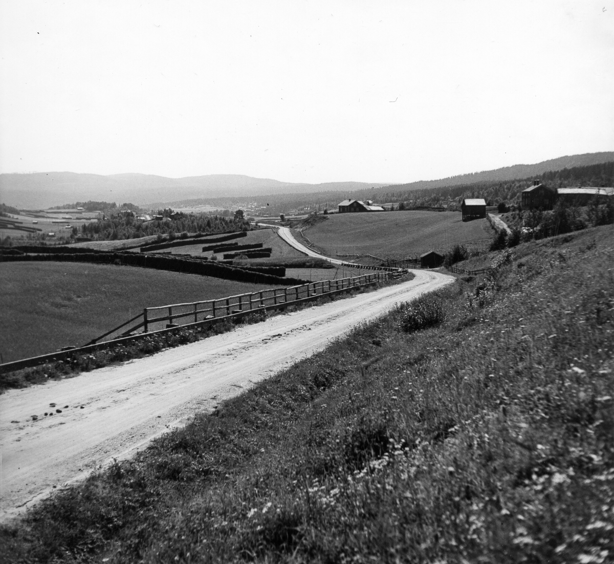 Väg vid Åsbo. Gården Ol-Mats uppe till höger i bild.
