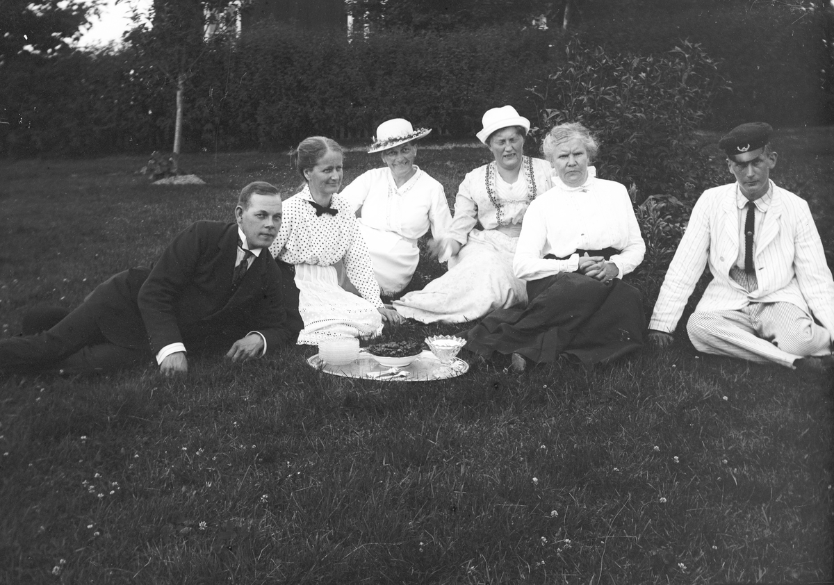 Margta Hillström tvåa från vänster. Fotografen själv, Olof Hillström, längst till höger.