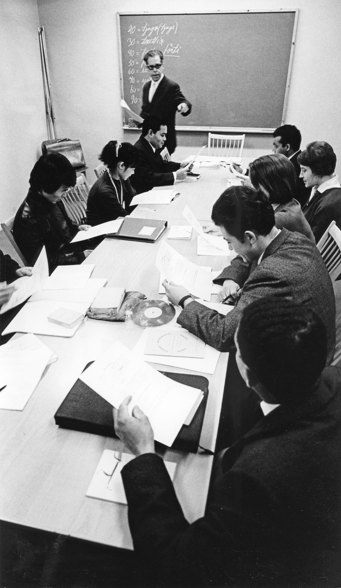 Svenska för utlänningar i Gävle. Från utställningen "Gävlar i stan" på Gävle Museum 1967.