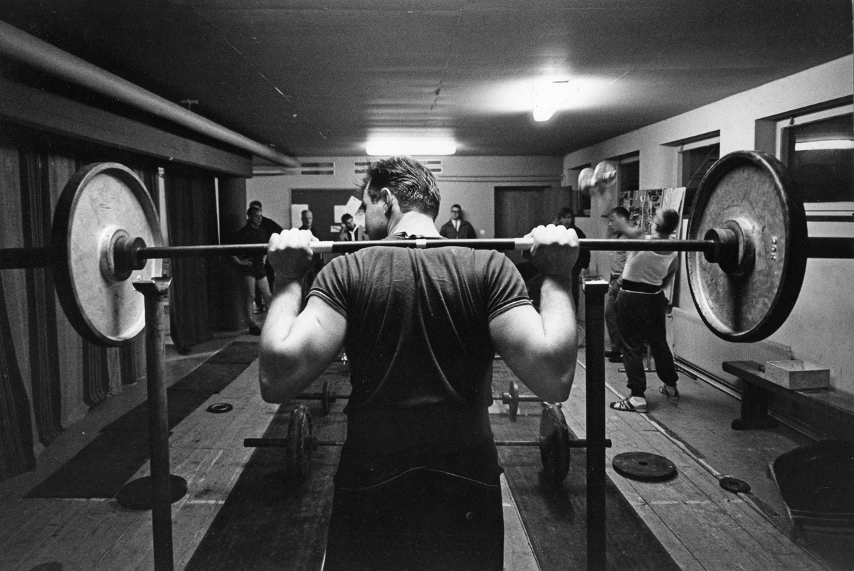 Kraftsport. Tyngdlyftning i Gävle. Från utställningen "Gävlar i stan" på Gävle Museum 1967.