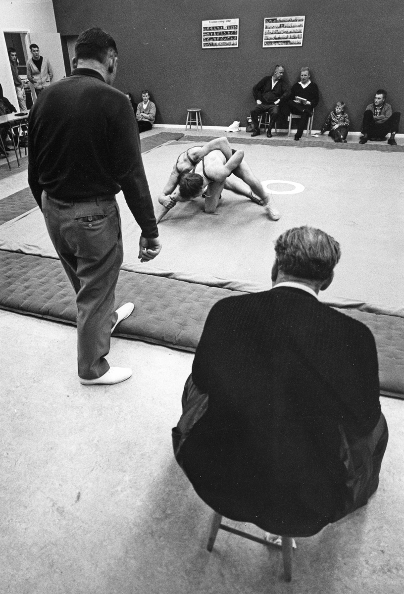 Kampsport. Brottning i Gävle. Från utställningen "Gävlar i stan" på Gävle Museum 1967.