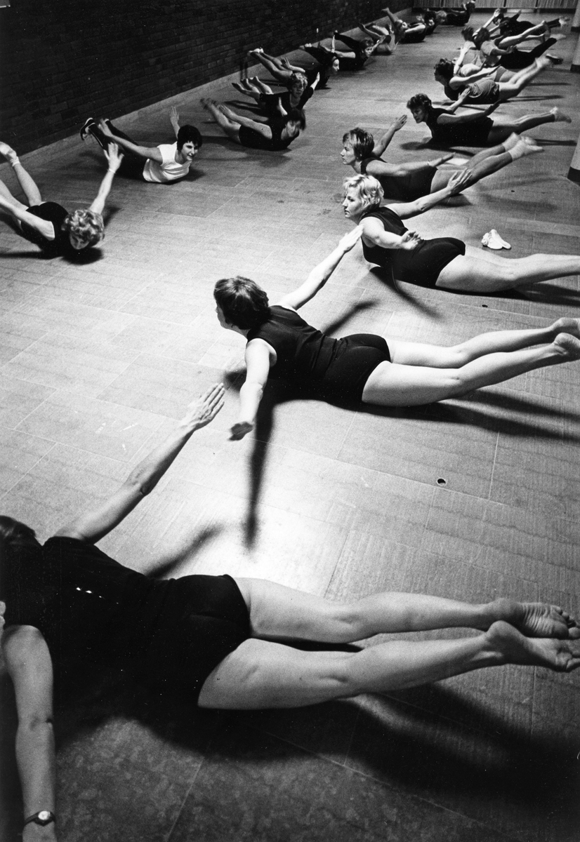 Motionsgymnastik i Strömbadet, Gävle. Från utställningen "Gävlar i stan" på Gävle Museum 1967.