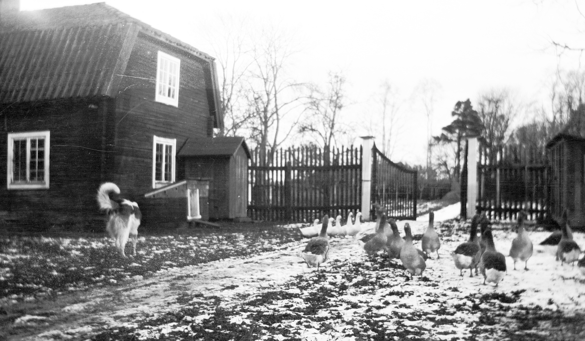 Hund, Gäss och Ankor på gården. Tidsomfånget är 1900 - 1940